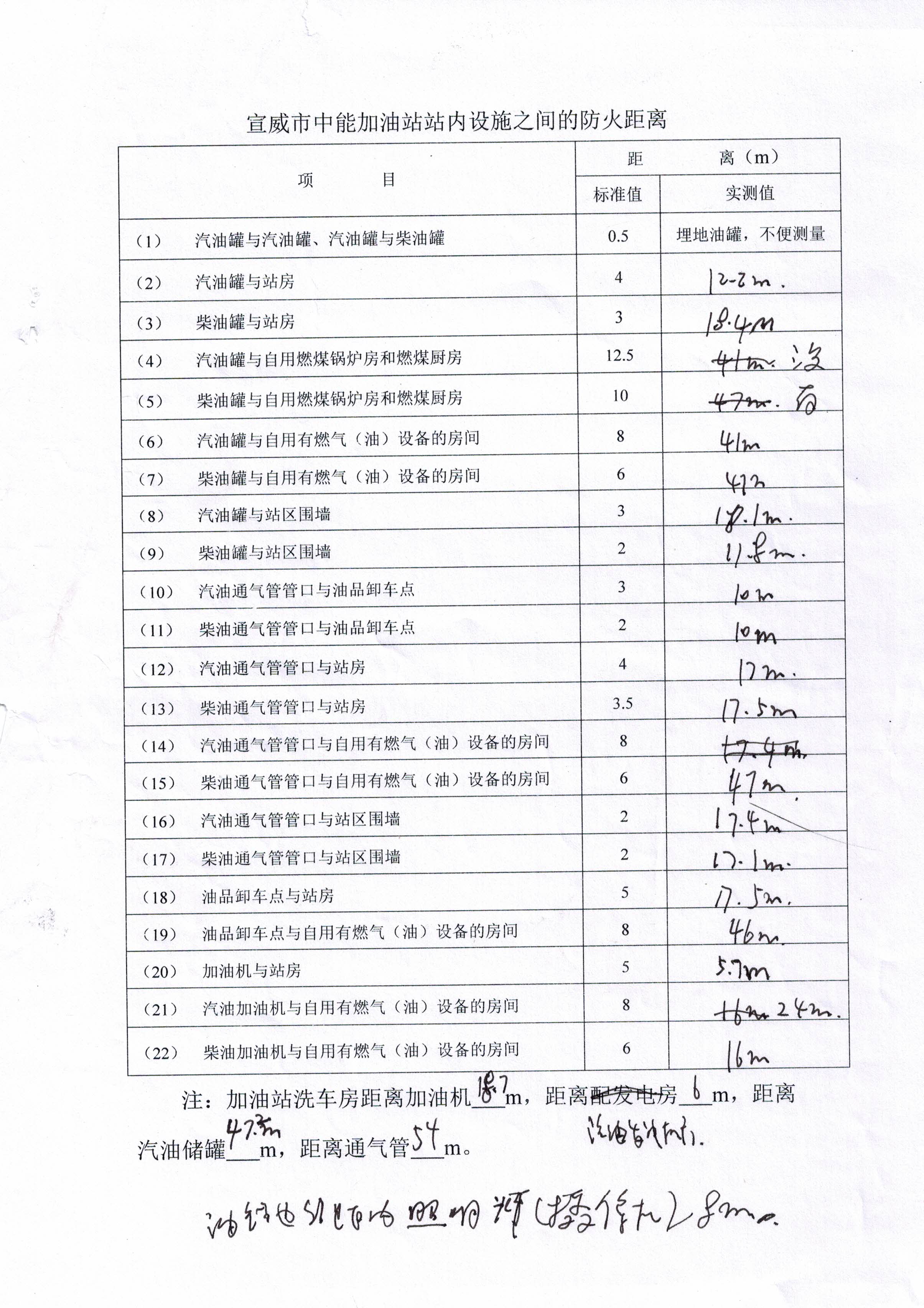 評價結論為:宣威市中能加油站已完成本次評價發現的不符合項整改,站址選擇及平面布置、加油工藝及設施、消防設施、電氣及報警系統、建(構)筑物等方面符合《汽車加油加氣加氫站技術標準》(GB50156-2021)標準規定;經營場所、危險化學品儲存設施、人員配置及培訓考核、安全管理制度、安全操作規程、應急預案、應急物資等方面滿足《危險化學品安全管理條例》(國務院令第591號,第645號修改)第三十四條、《危險化學品經營許可證管理辦法》(原國家安監總局令第55號公布,第79令號修正)第六條要求,從安全的角度宣威市中能加油站具備危險化學品經營的安全條件。 | ||||||||