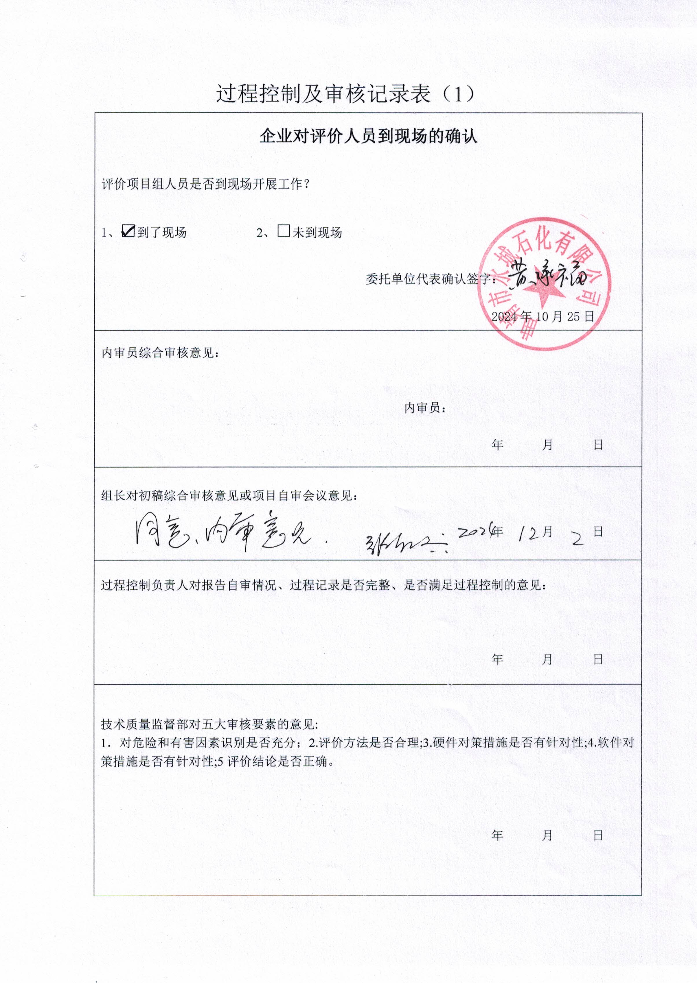 過程控制審核 | 內審意見(√ 通過 口 不通過 ) √ 是 口 否 | |||||||